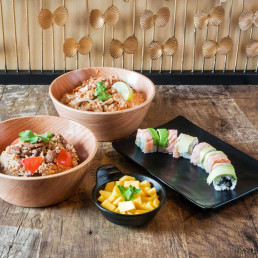 If you're a fan of spicy flavors, don't miss out on the Nouilles Sauté Spicy, featuring tender chicken, thick rice noodles, Thai spinach, and chives all tossed in a fiery sauce. And for those craving a taste of the sea, the Sashimi mix of tuna and salmon served with perfectly seasoned rice is a true delight.